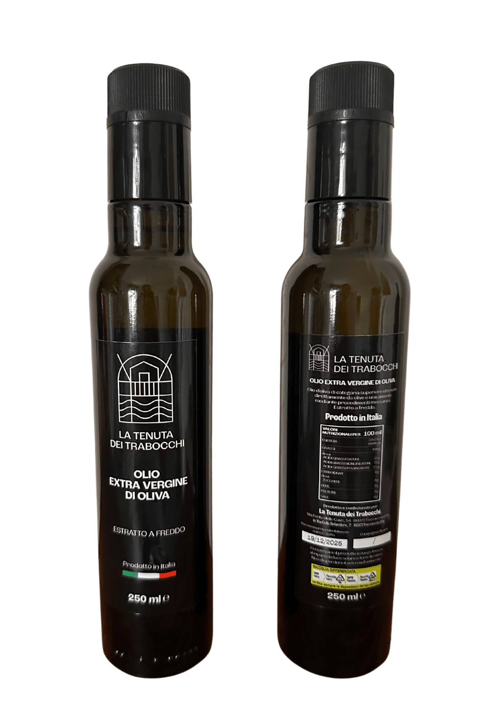 Il nostro olio extravergine d’oliva è il risultato di una cura meticolosa e di una tradizione che si rinnova. Spremuto a freddo entro 24 ore dalla raccolta, è ottenuto da un blend di olive Leccino e Gentile, una varietà autoctona abruzzese apprezzata per le sue eccezionali qualità. Prodotto 100% italiano, racchiude il sapore autentico della nostra terra, con un processo sostenibile e tecnologie moderne che ne esaltano i valori nutrizionali. Disponibile in formati adatti a ogni esigenza:
